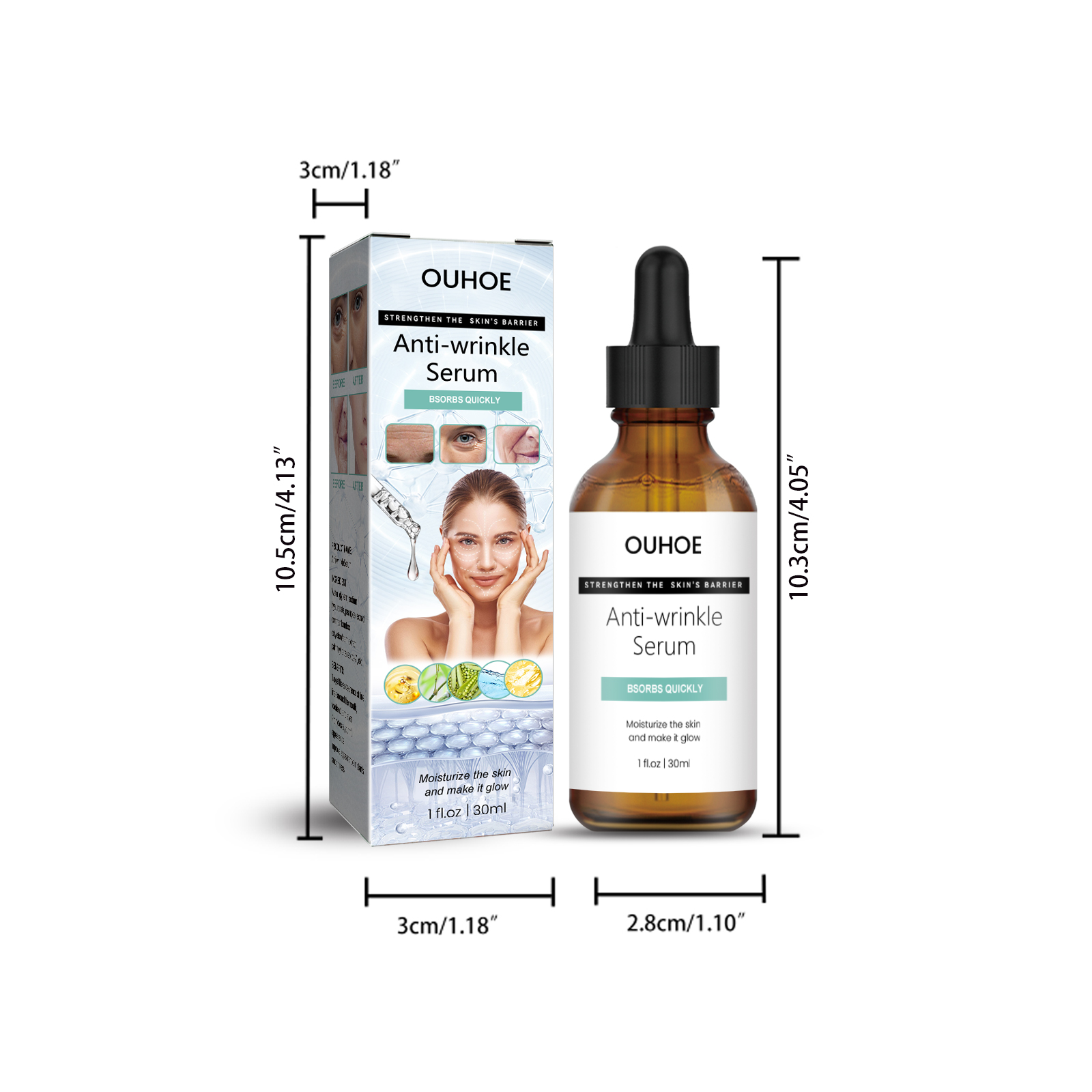 Our facial serum contains palmitoyl tetrapeptide-7, standard bamboo leaf/stem extract, and pea extract.It can penetrate the skin, form elasticity on the surface, wrap the skin, with a texture like water, light and refreshing, non-sticky, reduces wrinkles, and nourishes the skin.Its usage method is very simple: 1. After cleansing and toning, take an appropriate amount of this product in the palm of your hand; 2. Apply along the skin texture of your face; 3. Gently massage until it is absorbed by the skin.Anti-Aging Serum targets fine lines around the mouth, forehead and eyes to make skin look younger and smoother.