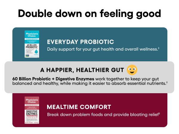 Physician's Choice Hack Your Tummy Bundle combines 60 Billion Probiotic and Digestive Enzymes for ultimate daily digestive and mealtime discomfort support