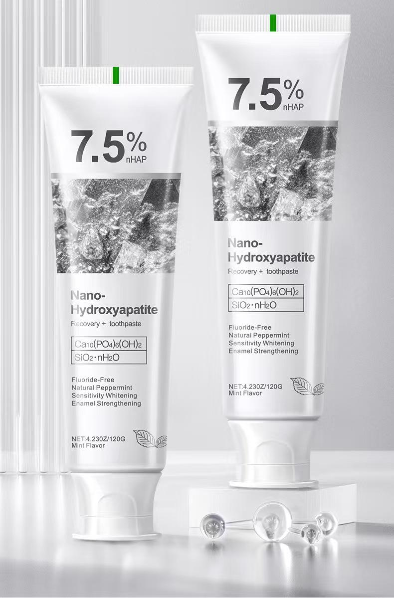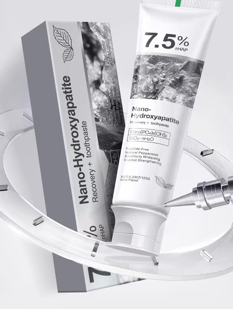7.5% Hydroxyapatite Toothpaste: Contains the natural mineral hydroxyapatite, which actively restores and strengthens tooth enamel and protects teeth from daily wear and tear.